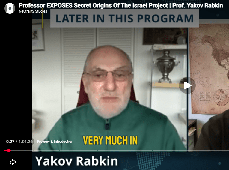 Zie ook het recente boek van de auteur: Jakov Rabkin, Israel in Palestine, Jewish rejection of Zionism, Aspect Editions, september 2025. Of zijn geschiedenis van het antizionisme: